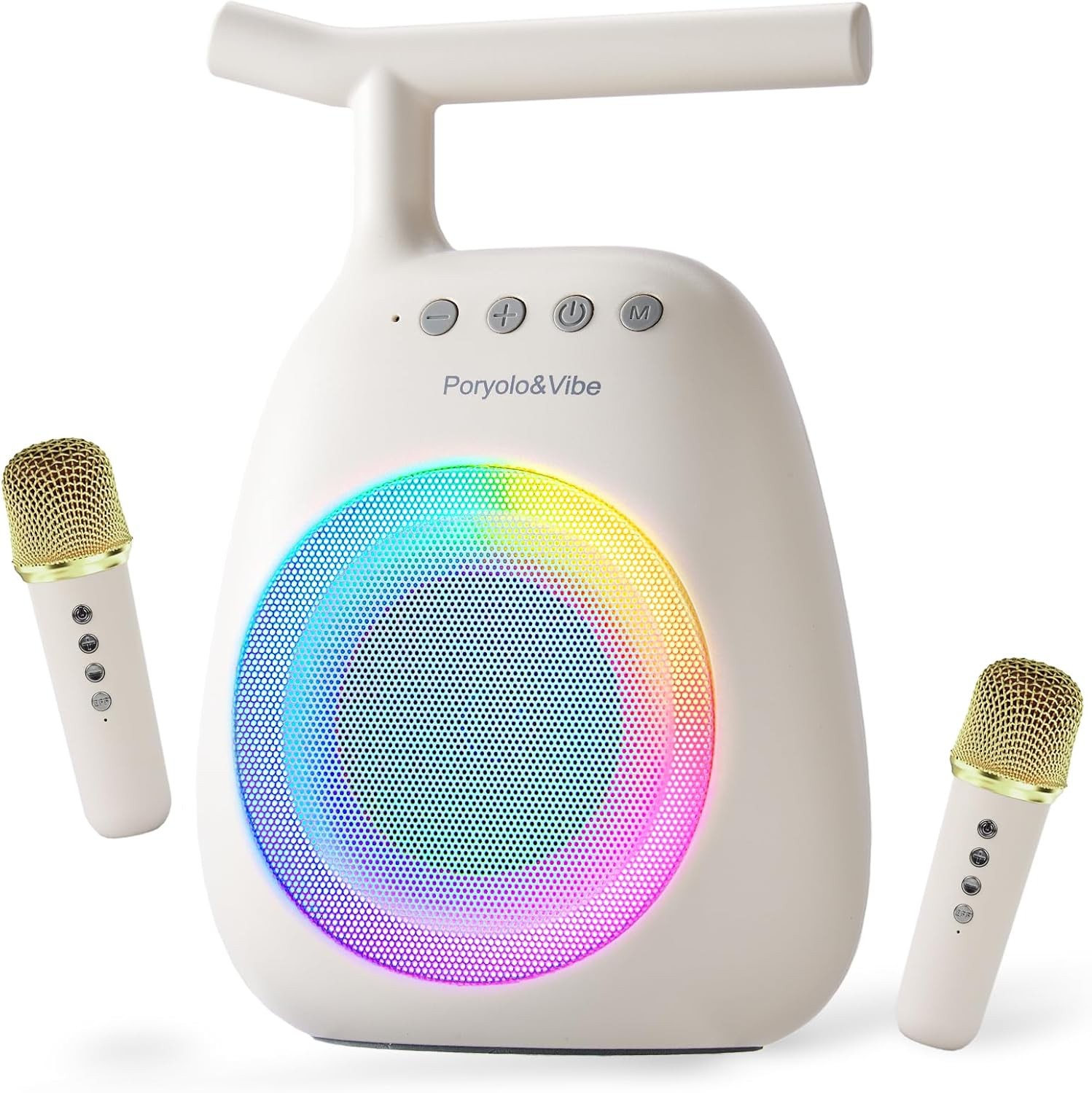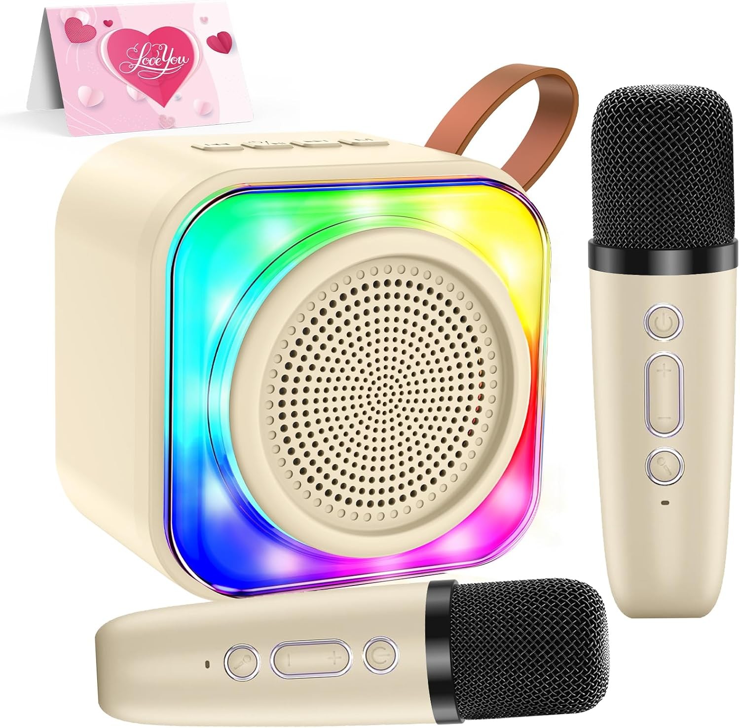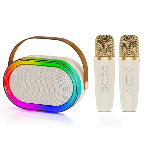 Karaoke Machine for Kids and Adults,Mini Portable Bluetooth Speaker with 2 Wireless Microphones,Led Lights for TV, Home Party,Kids Gifts for Girls Boys Family Party Birthday(Beige)