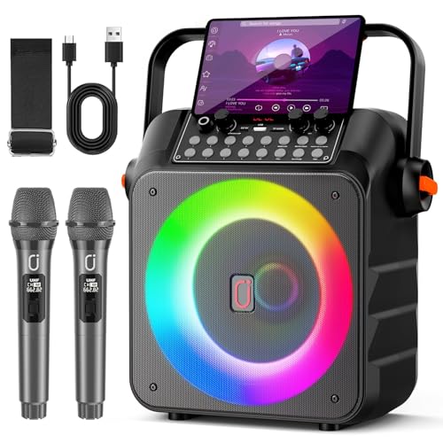 Karaoke Machine for Adults and Kids with 2 UHF Wireless Microphones,Portable Bluetooth Speaker PA Speaker System with LED Party Lights for Home Party, Picnic,Car,Outdoor/Indoor/Birthday Gifts