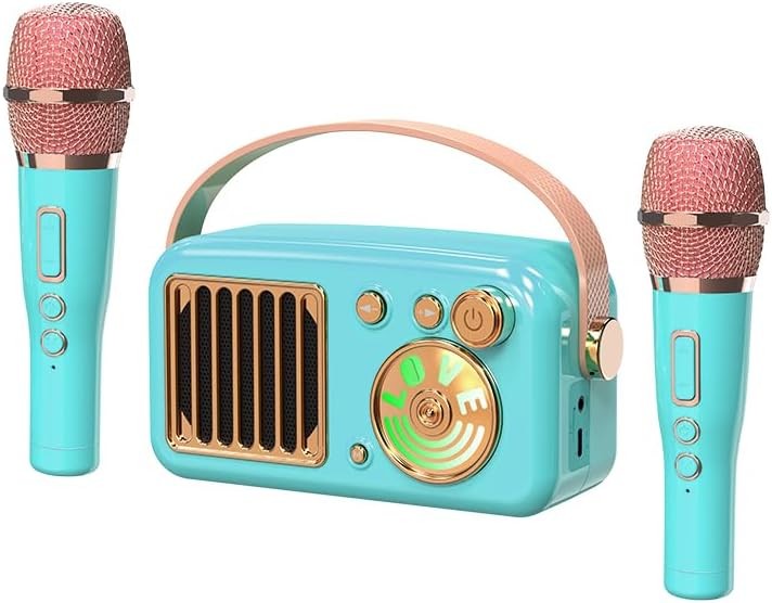 Karaoke Machine for Kids Adults, Mini Karaoke Machine with 2 Wireless Microphone