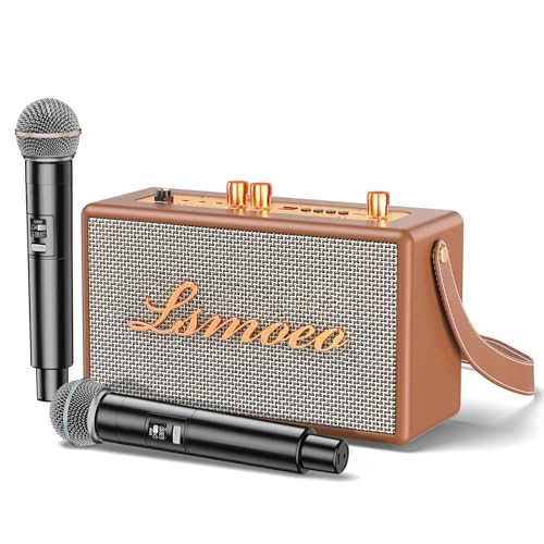Karaoke Machine for Adults,2 Wireless Microphones for Karaoke Speaker, Portable Microphone and Speaker Support Four-Channel Microphone Expansion for Home Party,Picnic,Car,Indoor/Vintage Gifts-Brown