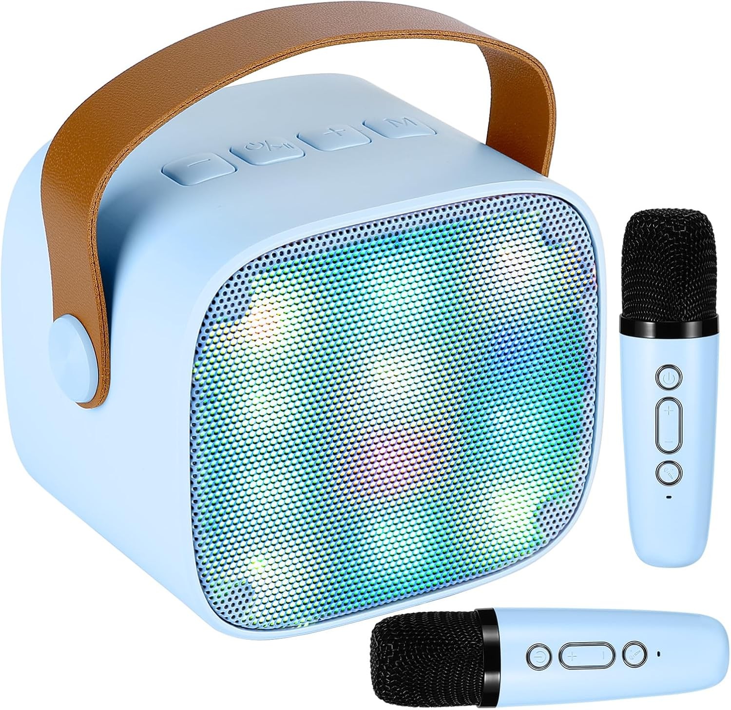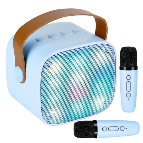 Caiord Karaoke Machine for Kids and Adults,Mini Portable Bluetooth Speaker with 2 Wireless Microphones,Led Lights for TV, Home Party,Kids Gifts for Girls Boys Family Party Birthday(Blue)