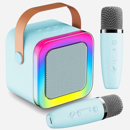 Karaoke Machine Mini Karaoke Machine for Kids Adults Karaoke Machine 2 Microphones and LED Lights Portable Bluetooth Speaker Birthday Gifts Toys for Girls and Boys (Blue)
