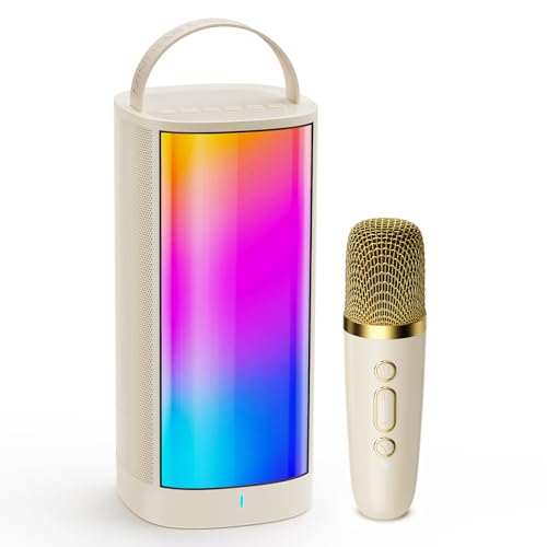 Karaoke Machine for Kids Adults, Portable Bluetooth Speaker with Wireless Microphone, Gifts Toys Presents for Girls Ages 4, 5, 6, 7, 8, 9, 10, 12 +Year Old Birthday Home Party(Beige)