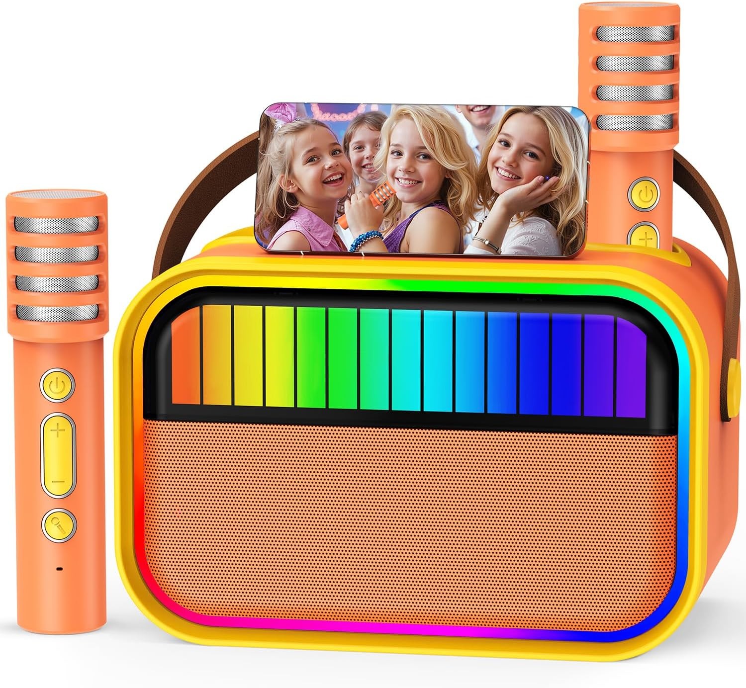 Ankuka Karaoke Machine for Kids Adults, Kids Toys for 3-12 Years Old Girls Birthday Presents, Portable Bluetooth Karaoke Speaker with 2 Microphones Girls Gifts for Girls Party Christmas Xmas (Orange)