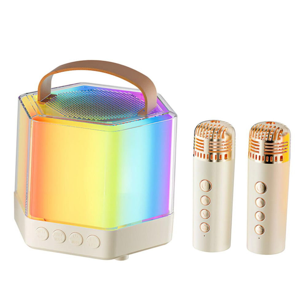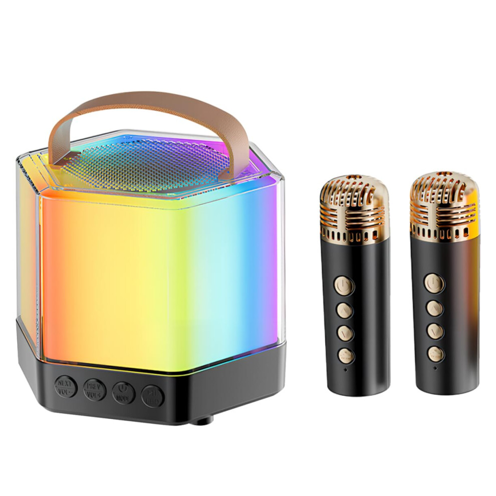 Compact Wireless Karaoke Speaker Set: Twin Mics Vibrant RGB Lighting