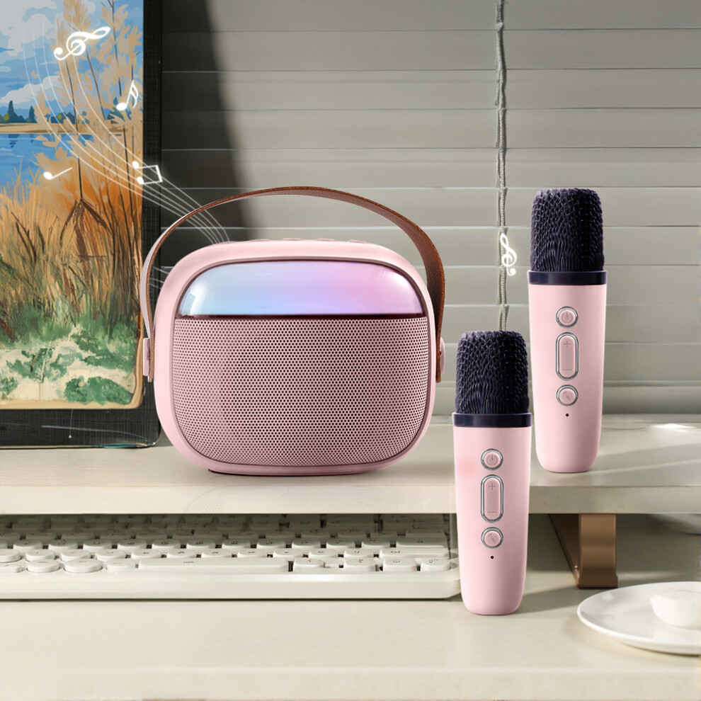 (pink, One size) Mini Karaoke Machine For Kids And Adults Portable Bluetooth Speaker With Microphone Cute Karaoke With Microphone Set For Family Party