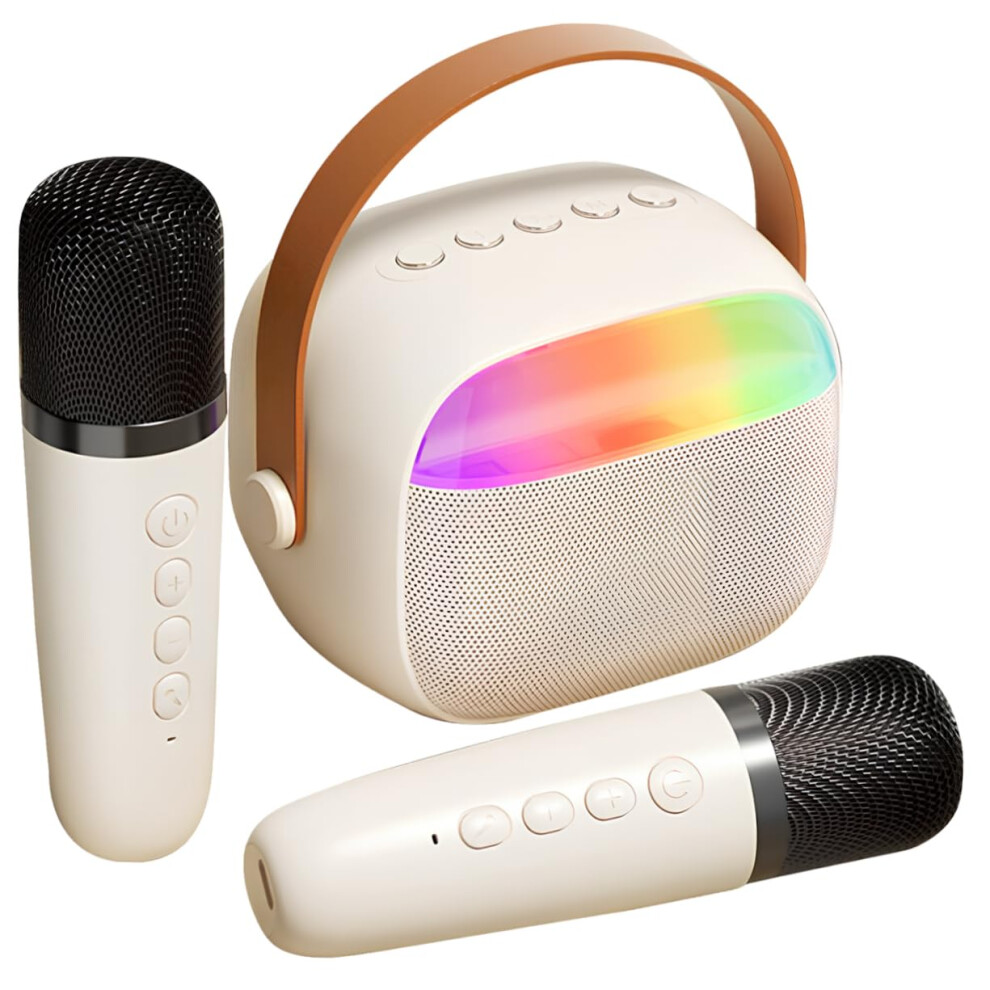 Microphone Set Karaoke Machine for Toddlers and Adults, Portable Beige ABS Karaoke Speaker with Microphone