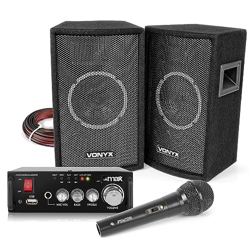 VONYX SL6 Home Karaoke Speaker System Set with Wired Microphone, Bluetooth Amplifier DJ Speakers PA Kit for Parties, Karaoke Singing & Home Entertainment