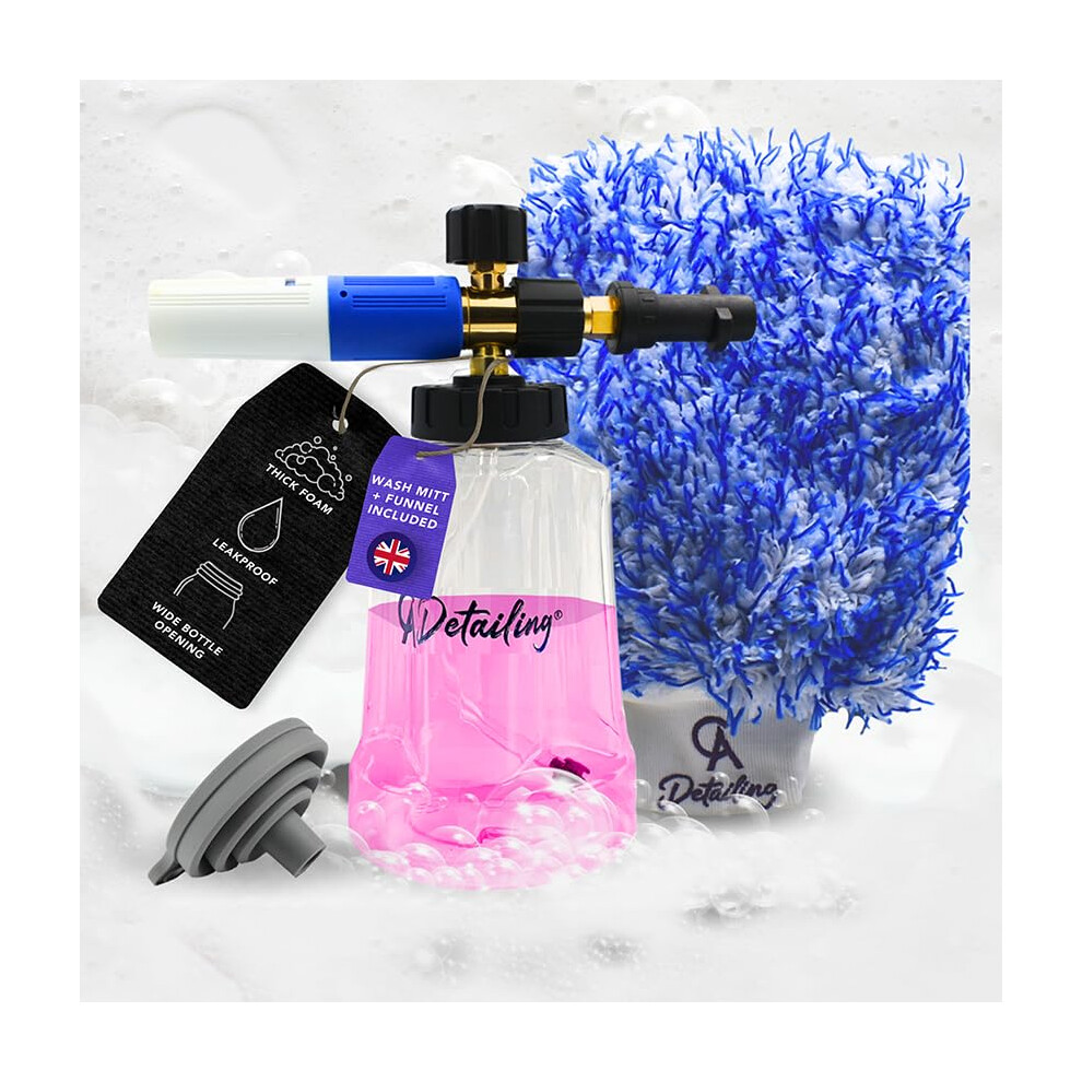 Karcher Snow Foam Lance K2-K7 Compatible - 1 Litre Leak Proof Snow Foam Gun for Pressure Washer Includes Car Wash Mitt and Nozzle