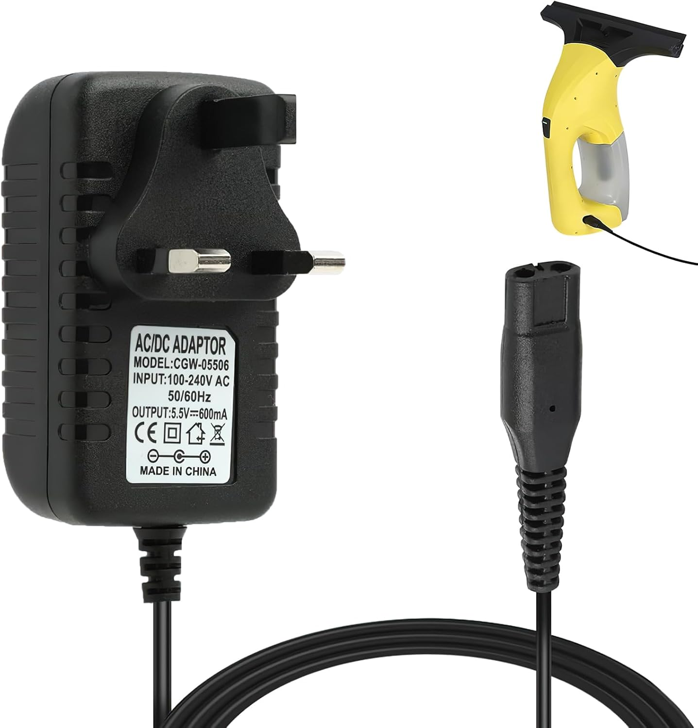 Karcher Window Vac Charger Cable for WV50 WV55 UK Plug, 5.5V Battery Charger Lead, Part 26331150