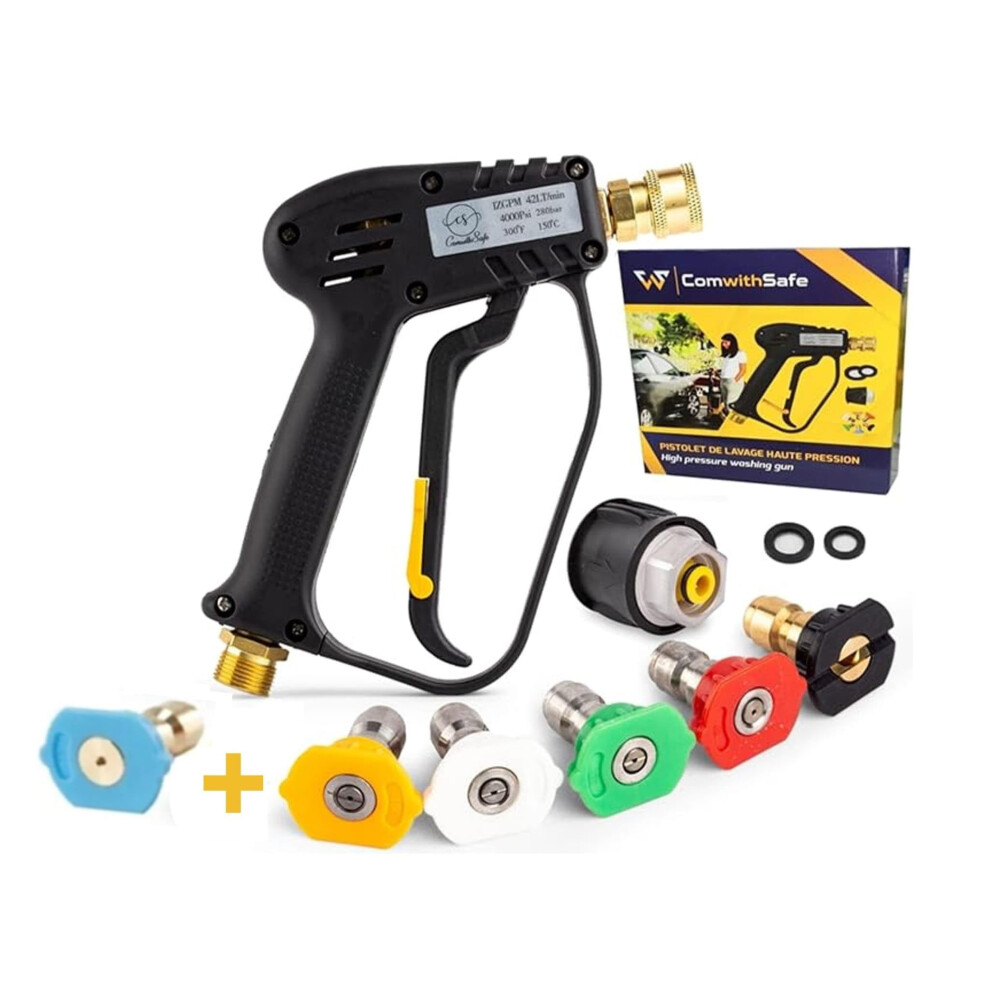 4350 PSI High Pressure Washer Gun with 7 Nozzle Tips & Quick Connector, Compatible with Karcher K1-K7 Models, Short Jet Wash Gun with M22 14mm Fitting & 1/4" Quick Connect (Black)