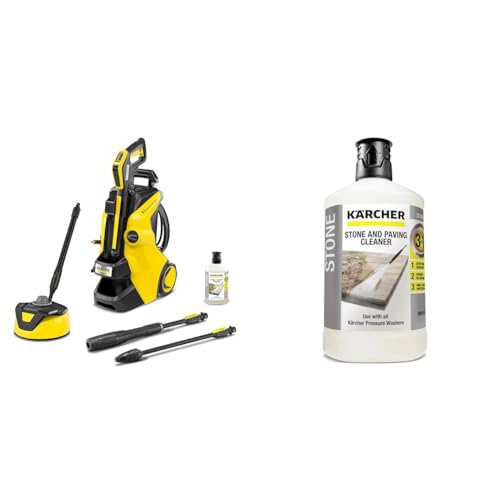 Bundle of Kärcher K 5 Power Control Flex Pressure Washer, pressure: max. 145 bar, flow rate: 500 l/h, area coverage: 40 m²/h + Kärcher 62957650 3-in-1 Stone Plug and Clean, Black, Unscented, 1L