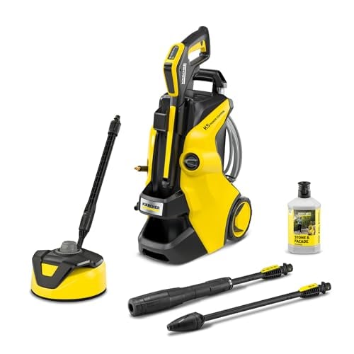 Kärcher K 5 Power Control Flex Home Pressure Washer, pressure: max. 145 bar, flow rate: 500 l/h, area: 40 m²/h, water filter + Kärcher 62957650 3-in-1 Stone Plug and Clean, Black, Unscented, 1L