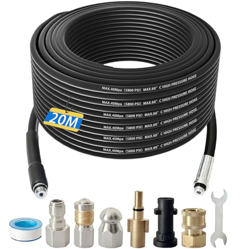 Pressure Washer Hose 20m, 5800PSI High Pressure Replacement Hose with Quick Connector for Karcher K2 K3 K4 K5 K6 K7, Washer Extension Hose for Cleaning Cars Garden
