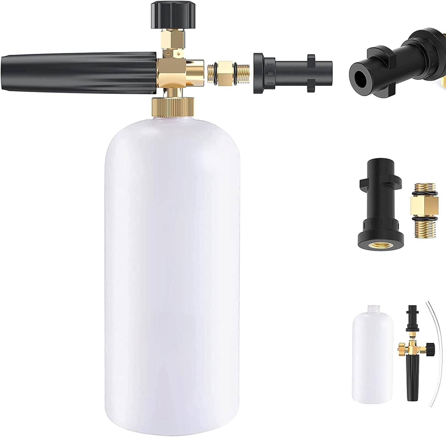 Snow Foam Lance Foam Cannon Adjustable 1L High Pressure Washer Soap Dispenser Bottle Nozzle Brass Adapter Compatible with Karcher K2 K3 K4 K5 K6 K7