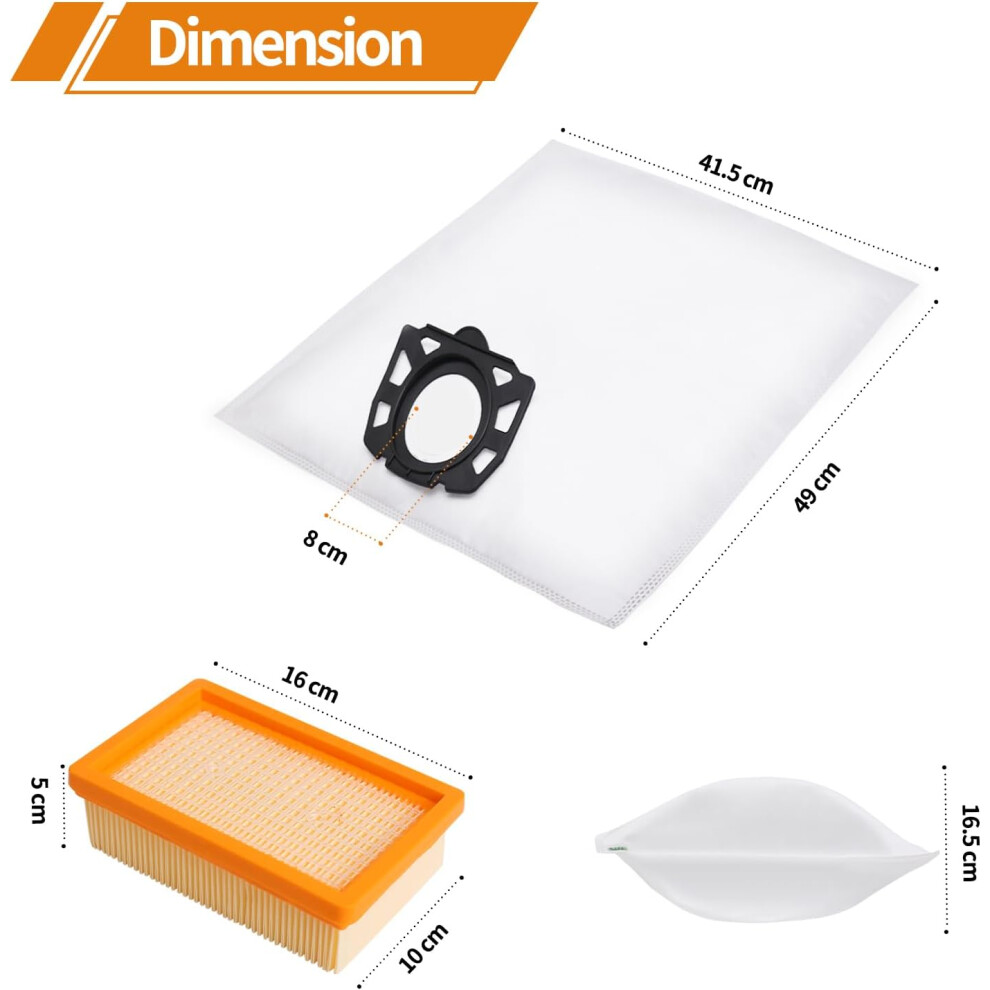 Replacement Filter Bags for Karcher, Compatible With Karcher WD4 WD5 WD6 MV4 MV5 MV6, Easy Replacement Wet & Dry Vacuum Replacement Filter Bags, Multi