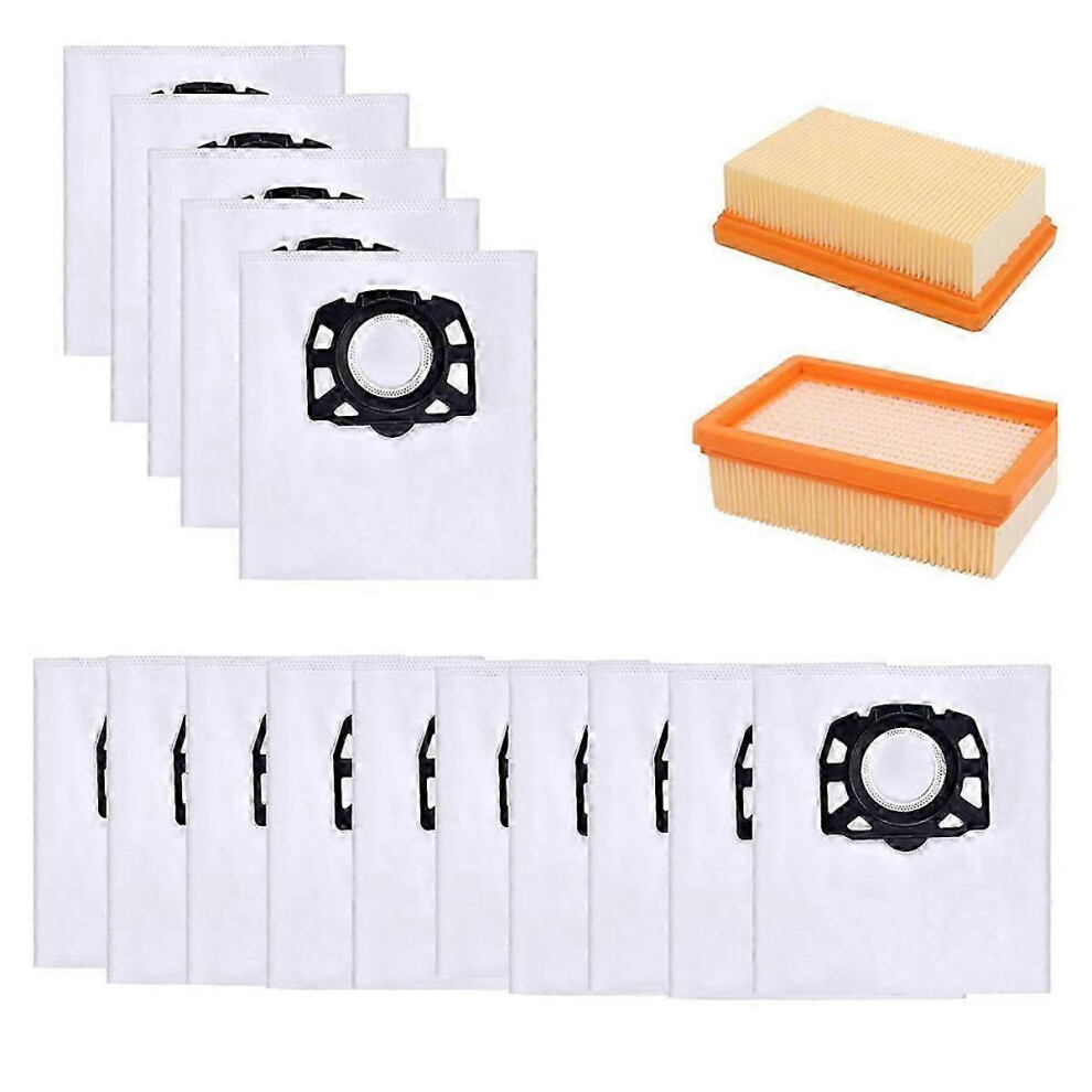 12 Vacuum Cleaner Bags + 1 Flat Pleated Filter For Karcher WD4, WD5 And WD6 Wet & Dry Multi-Purpose Vacuum Cleaner