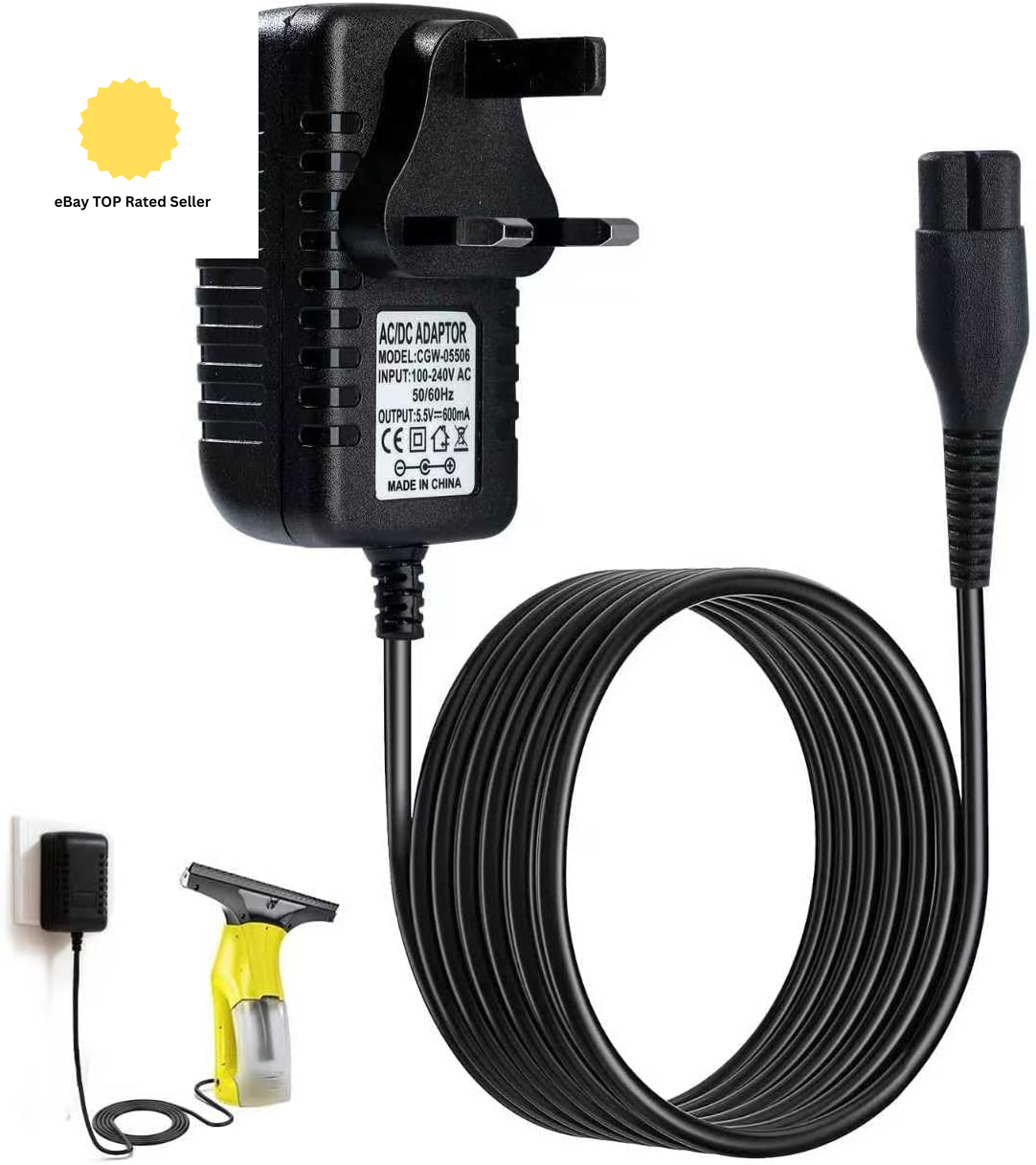 Superer 5.5V Charger Fit for Karcher Window Vac Cleaner, Replacement for Karcher WV75 WV60 WV2 WV1 WV5 Plus – Back to Shine Again, Window Vac Cleaner Charging Plug Power Lead