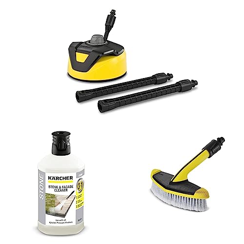 Kärcher T 5 Patio Cleaner - Pressure Washer Accessory & 3-in-1 Stone Plug and Clean - Black & Soft Washing Brush - Pressure Washer Accessory
