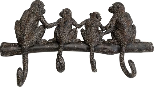 Kare Design Wall Hook Rack Monkey Family, Black, 38 cm, Monkey Motif, Home Decor, Wall Organizer, Funny Sculpture, for Coat and Hat, Enterway Decorative Style, Hallway, Office