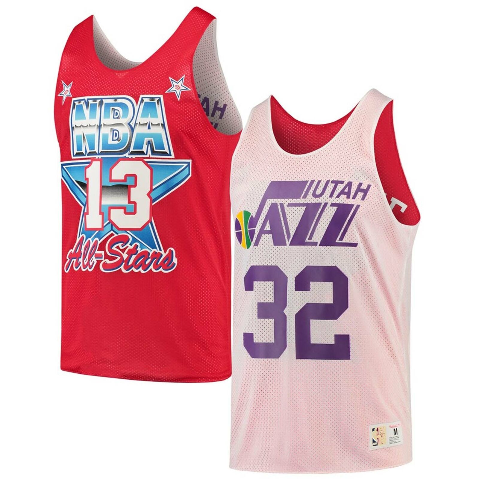 Mitchell & Ness Reversible Utah Jazz Karl Malone Mens Vest - Red Textile - Size X-Small