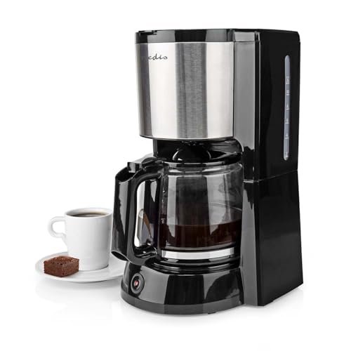 NEDIS 1.25L Filter Coffee Machine with Keep Warm for 10 Cups, Anti Drip Function, Reusable Filter - Black/Silver