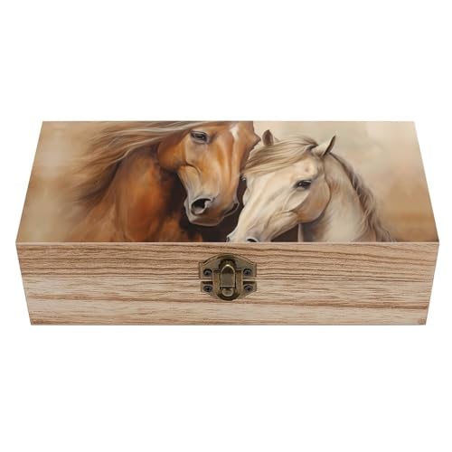 Portrait of Horses Love Wooden Storage Box With Lid Decorative Keepsake Boxes Jewelry Organizer Case Container Craft Gifts