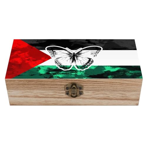 Palestine Flag And Butterflies Wooden Storage Treasure Box Container 7.9'' X 3.7'' X 2.3'' Keepsake Boxes with Hinged Lid And Front Clasp