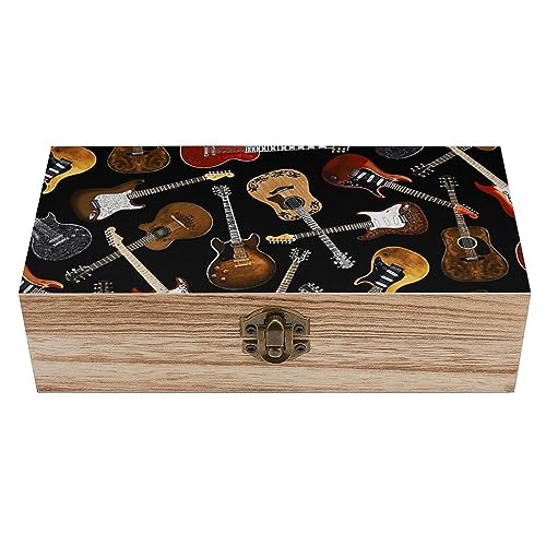 Guitars Pattern Wooden Storage Box With Lid Decorative Keepsake Boxes Jewelry Organizer Case Container Craft Gifts