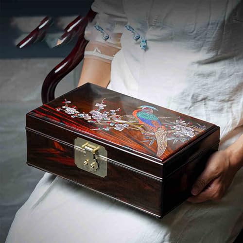 Large Redwood Finish Jewelry Box Chest With 2 Tier Storage Compartments Storage Organizer for Gifts Keepsake Boxes A