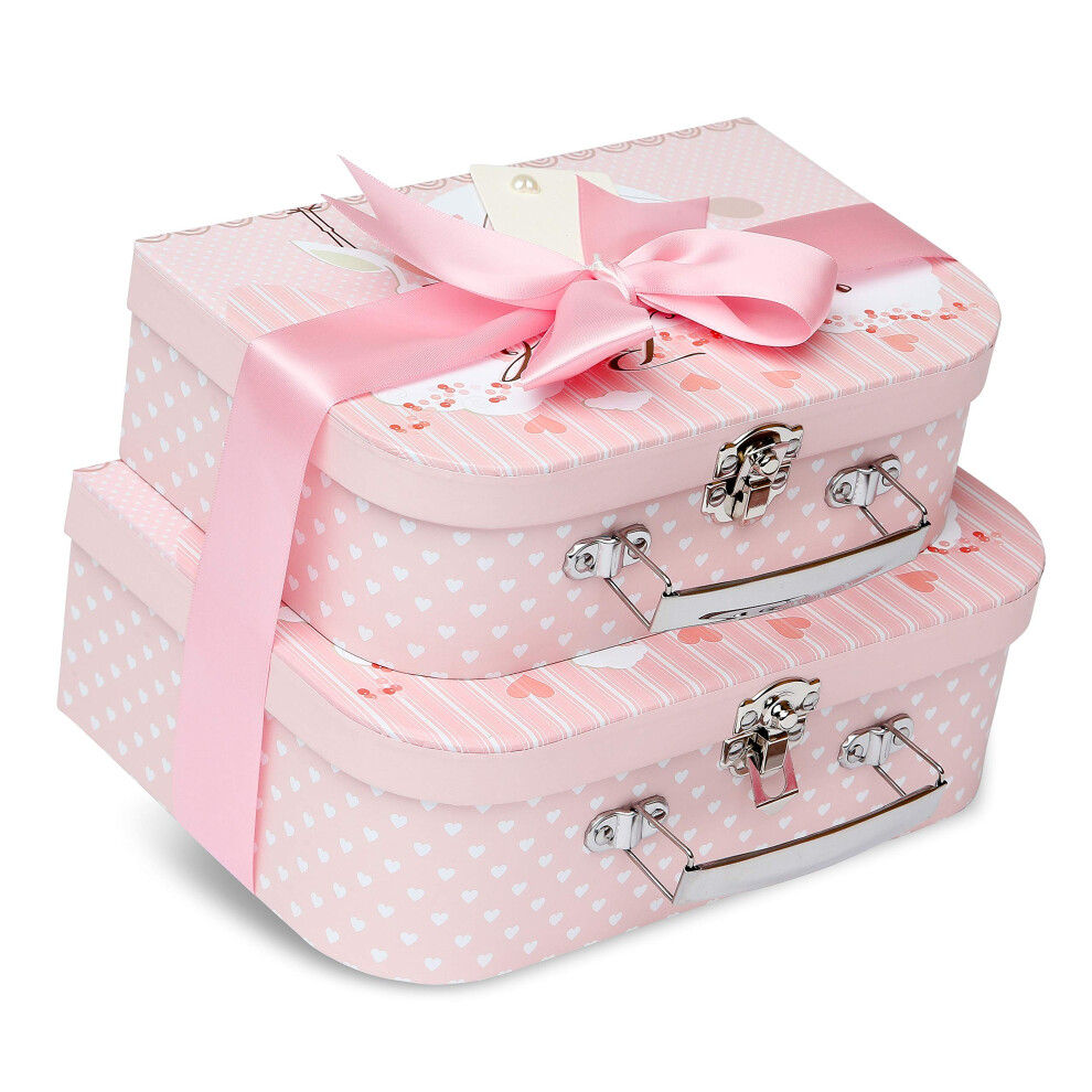 Gift Box for Baby - 2 Keepsake Boxes Empty for DIY Baby Gift Set Ready to Fill Meduim & Mini Suitcase Gift Box Set for New Baby Gifts, Baby Girl Gift