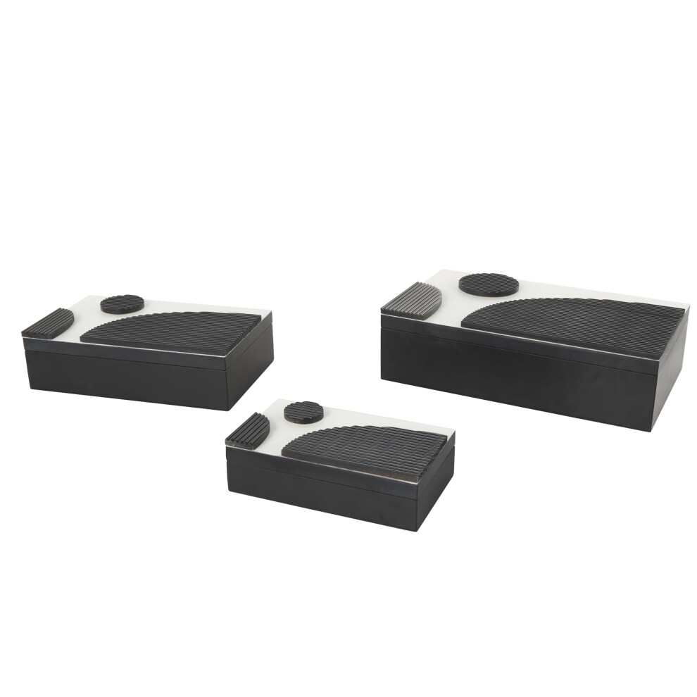 Deco 79 Wood Handmade Decorative Box Decorative Keepsake Boxes with 3D Geometric Accents Set of 3 Storage Boxes 15"""" 12"""" 9"""" W Black