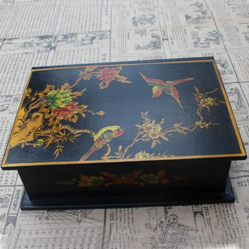 Decorative Wooden Box Vintage Flower Pattern Jewelry Keepsake Storage Boxes Chinese Style for Gifts, Home Decorations