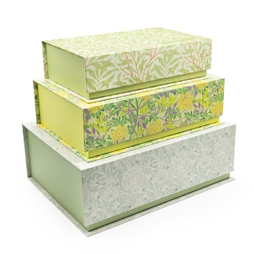 William Morris Set of 3 Nesting Storage Boxes | Tulip, Jasmine & Willow Bough Designs | Premium Decorative Keepsake Boxes with Magnetic Closures | Elegant Home Storage Solution