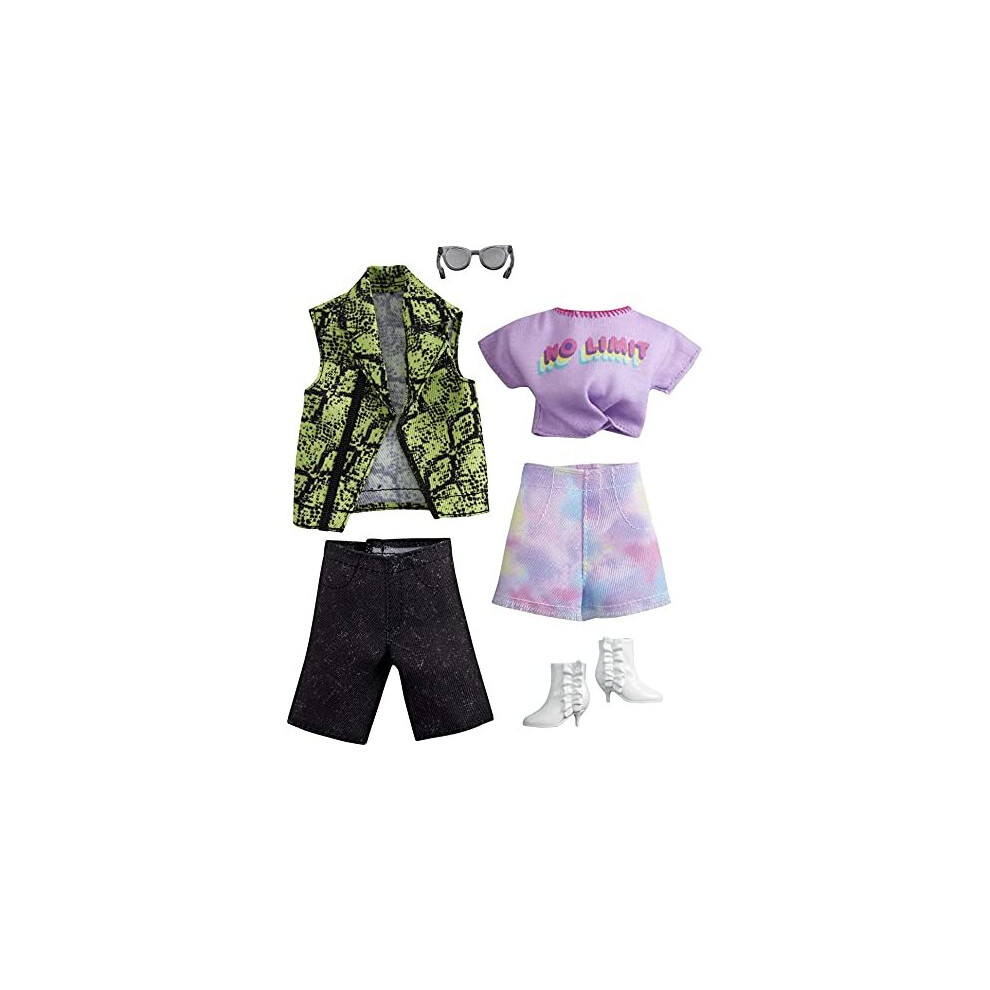 Barbie & Ken Fashions 2-Pack Clothing & Accessories Set 1 Plaid Dress & Purse for Barbie Doll & 1 Smiley Face Shirt Denim Shorts & Sunglasses for Ke