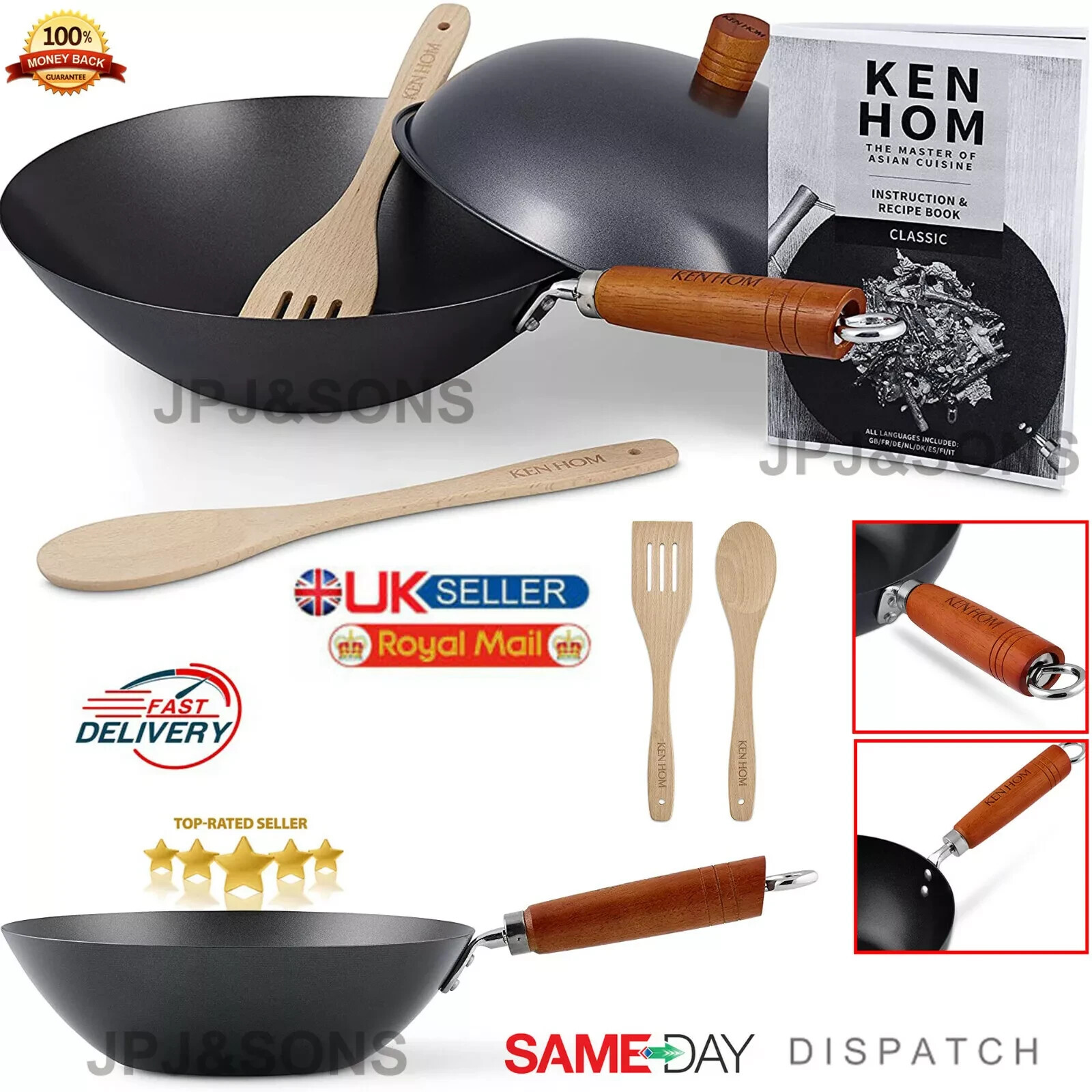 Ken Hom 5 Piece Non Stick Wok Set 31cm Carbon Steel Stir Fry Pan & Lid Large UK
