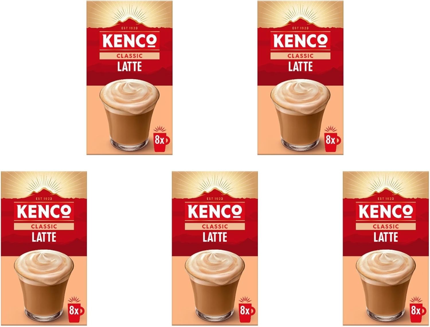 Kenco Latte Instant Coffee Sachets 8x16.3g (Pack of 5, Total 40 Sachets, 652g)