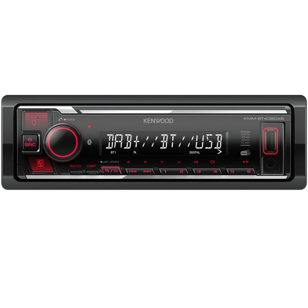 Kenwood KMM-BT408DAB USB Car Radio with DAB+ and Bluetooth Hands-Free Kit (Sound Processor, USB, AUX, 1 x Pre-Out 2.5 V, 4 x 50 Watt, Button Lighting, Red, Includes DAB+ Antenna)