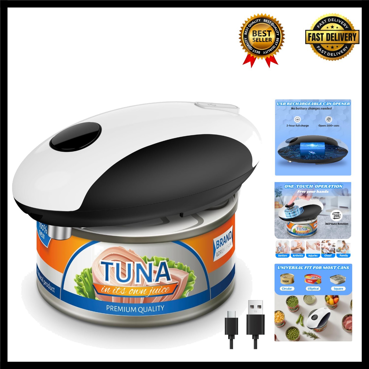 USB Rechargeable Electric Can Opener - One Touch, Safe, and Effortless Operation