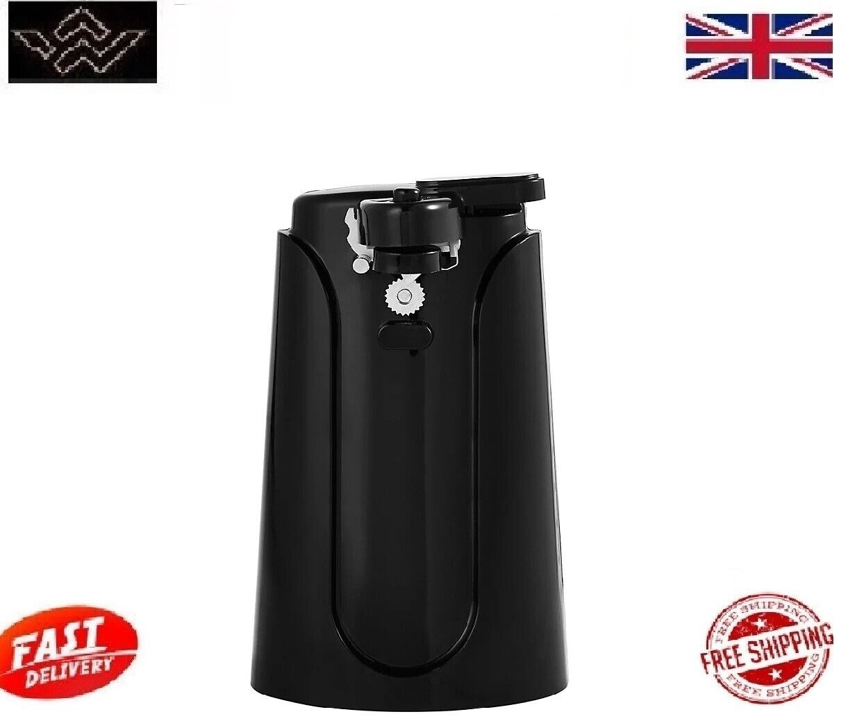 Black Electric Can Opener Kitchen Tin Bottle with Knife Sharpener 60 w 3 in 1 UK