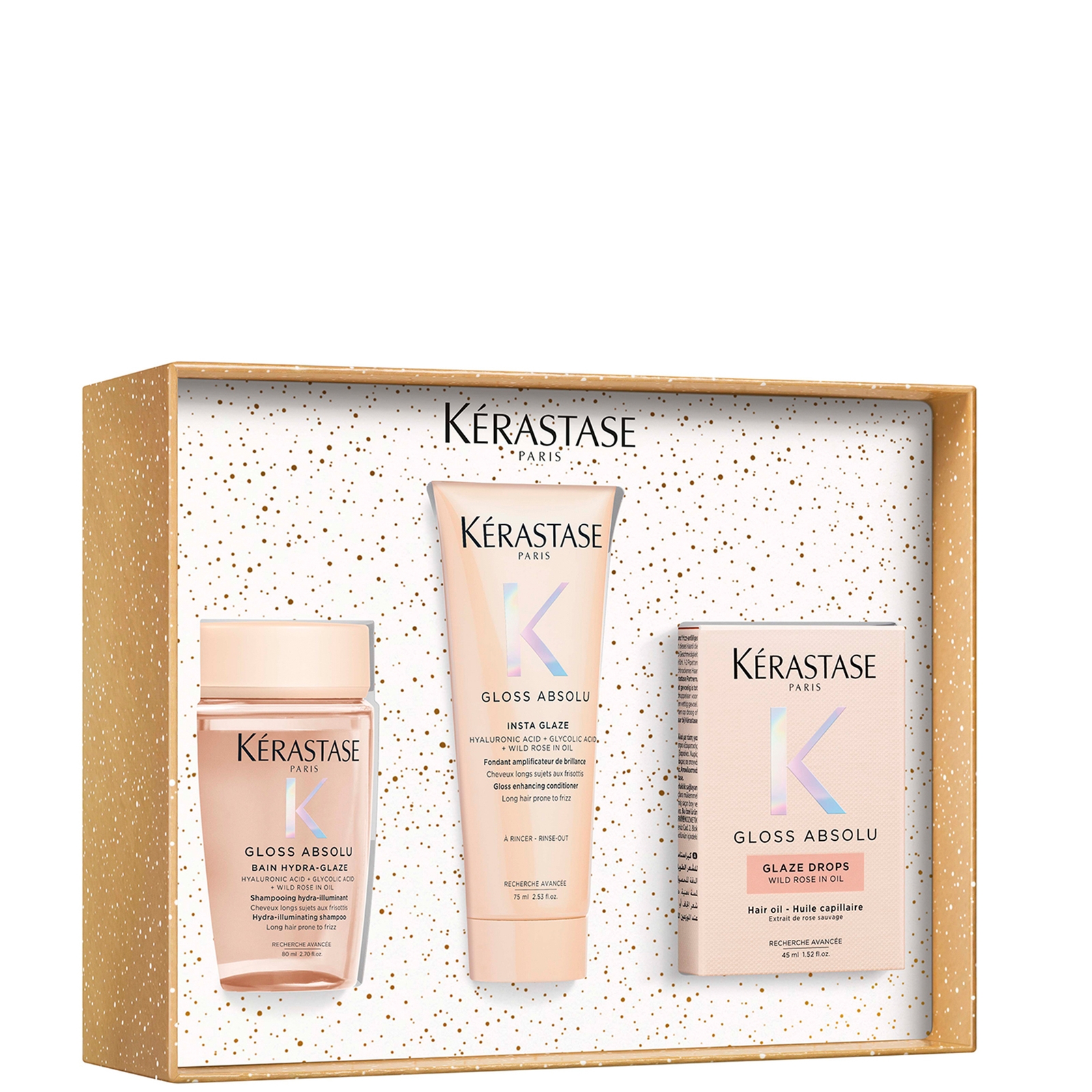 Kérastase Gloss Absolu Trio for Glossy Hair, Glaze Drops Hair Oil & Travel Size Shampoo & Conditioner (Worth £68.80)