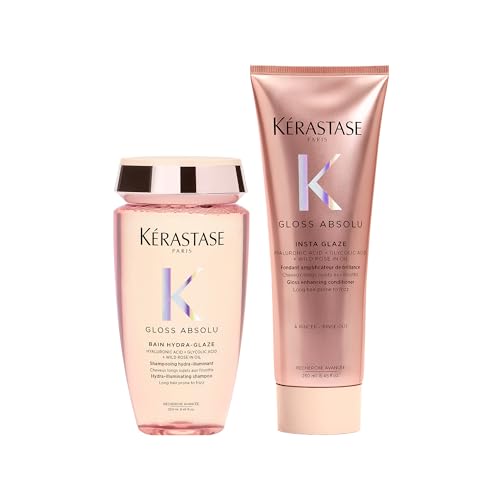 Kérastase Gloss Absolu Shampoo & Conditioner Set for All Hair Types, with Glycolic Acid, Hyaluronic Acid & Wild Rose in Oil