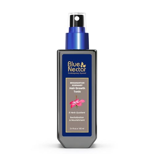 Blue Nectar Hair Growth Serum with Rosemary Water for Hair Growth: Ayurvedic Hair Tonic with Almond Oil & Rosemary Oil (8 Herbs, 100 ml)