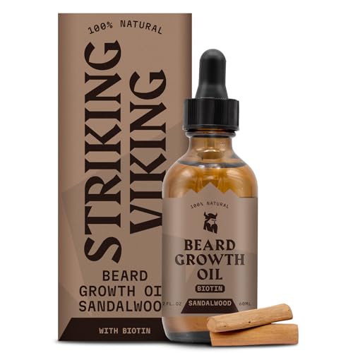 Striking Viking Beard Growth Oil with Biotin – Thickening and Conditioning Beard Oil Growth - Beard Serum for Facial Hair Growth for Men Sandalwood, 2 Fl Oz (Pack of 1)