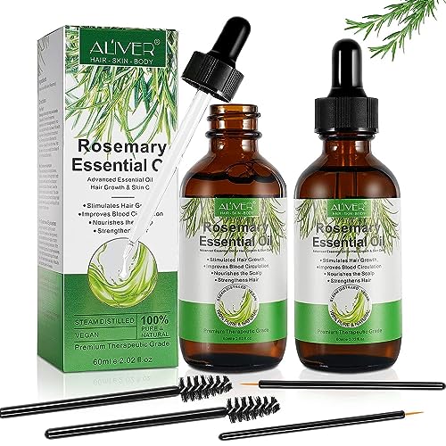 IFUDOIT Rosemary Essential Oil for Hair Growth, Eyebrow and Eyelash Skin Care, Aromatherapy & Diffuser, Loss Treatment Women Men, Improve Loss, Nourishes Scalp (2 Pack 60ml)