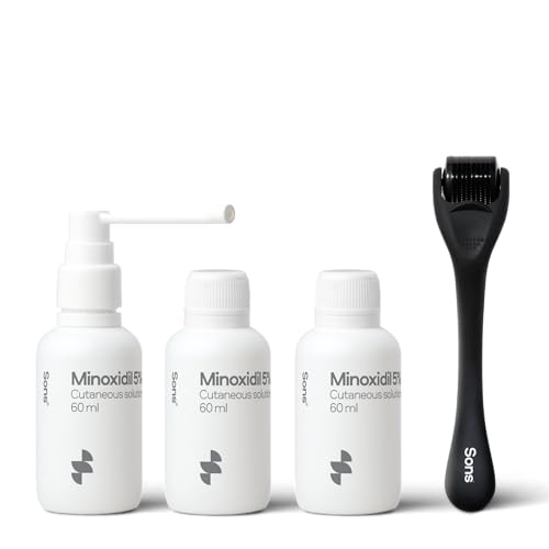Sons Minoxidil 5% Cutaneous Solution & Dermaroller for Men. Hair Regrowth Treatment for Hair Loss & Thinning in Men. Microneedling Stimulates Collagen & Reactivates Shrunken Follicles. Made in Europe.