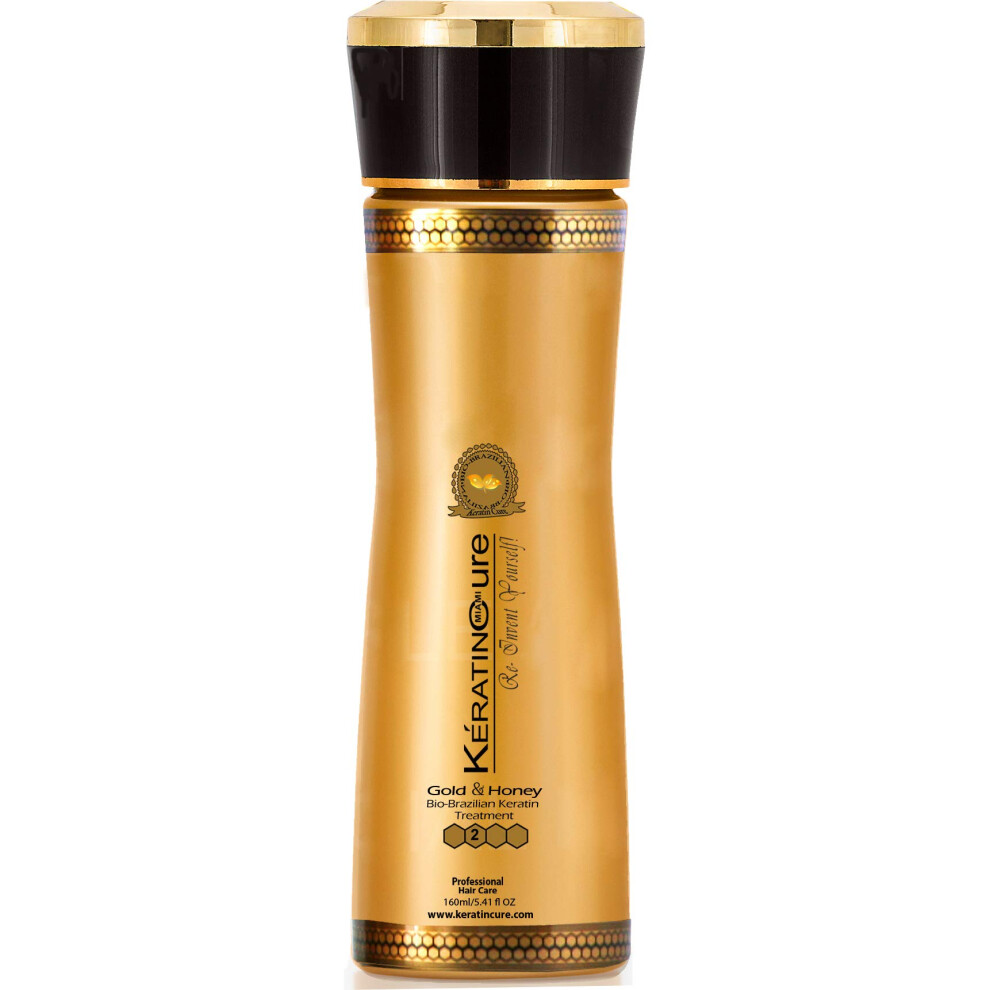 Keratin Cure Best Hair Treatment Gold & Honey Bio-Brazilian 5 Oz Kids Men Women Teens Silky Soft Formaldehyde Free Complex Argan Oil Nourishing Str