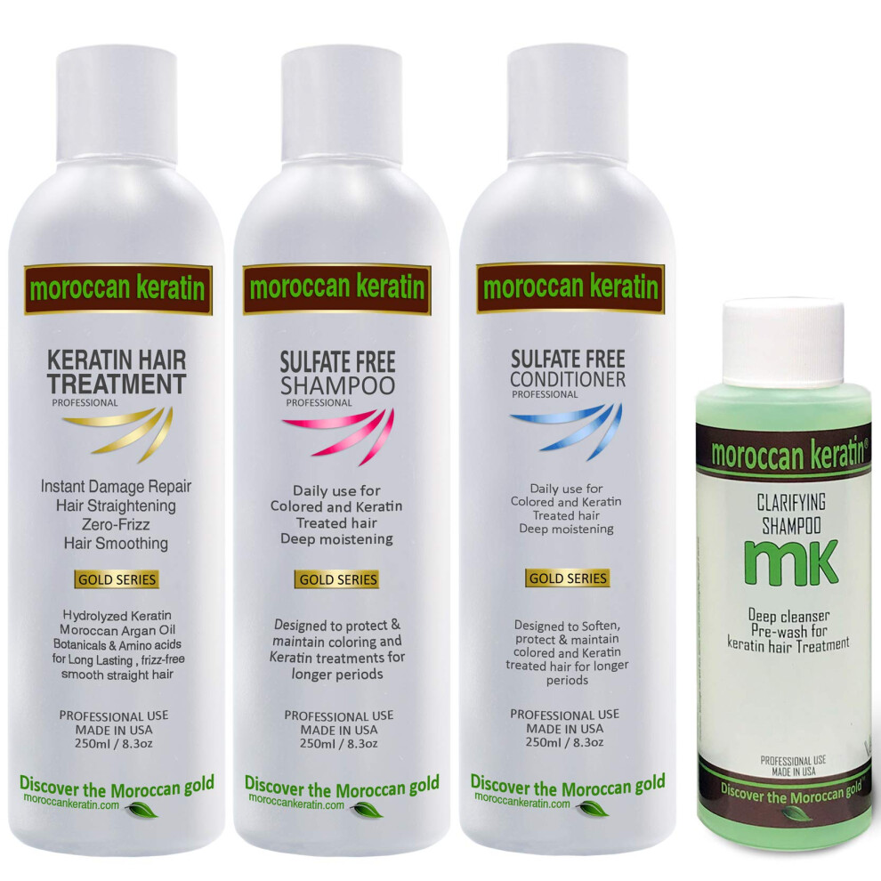 MOROCCAN KERATIN Brazilian Keratin Blowout GOLD SERIES Most Effective Brazilian Keratin Hair Treatment SET 250ML Professional Salon Formula