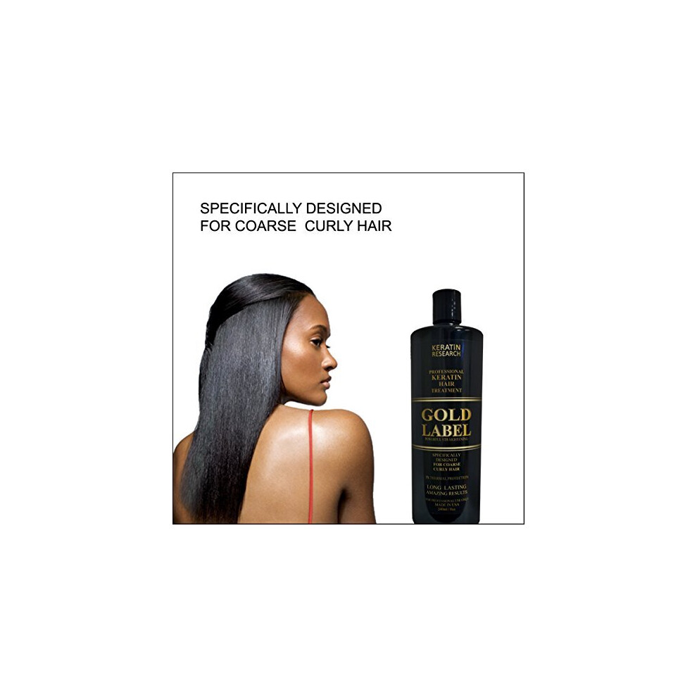 Gold Label Professional Brazilian Keratin Hair Treatment Blowout Super Strong Formula Specifically Designed for Coarse, Curly, Black, African,
