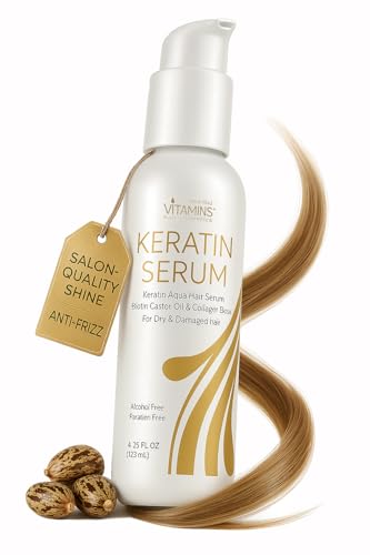 VITAMINS hair cosmetics Hair Serum for Frizzy Mane - Keratin Hair Treatment, Anti Frizz Moisturiser for Dry Damaged Locks - Heat Protection and Strengthening with Biotin & Collagen